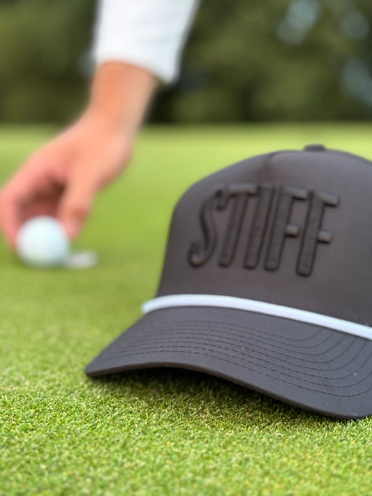 Stiffed It Golf ‘STIFF’ baseball hat. Black on black.